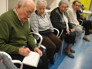 El passat dijous 20 de gener un grup d'alumnes del crèdit de Jocs de tauler vam visitar els avis i les àvies de la Residència de Flix. Va ser una trobada distesa i simpàtica que ens va permetre conèixer quines eren les joguines que es construïen quan eren petits, quines eren les seves distraccions i quins eren els jocs que practicaven.